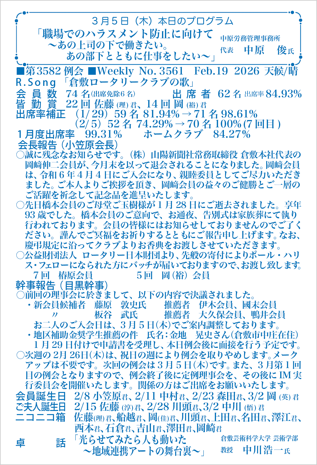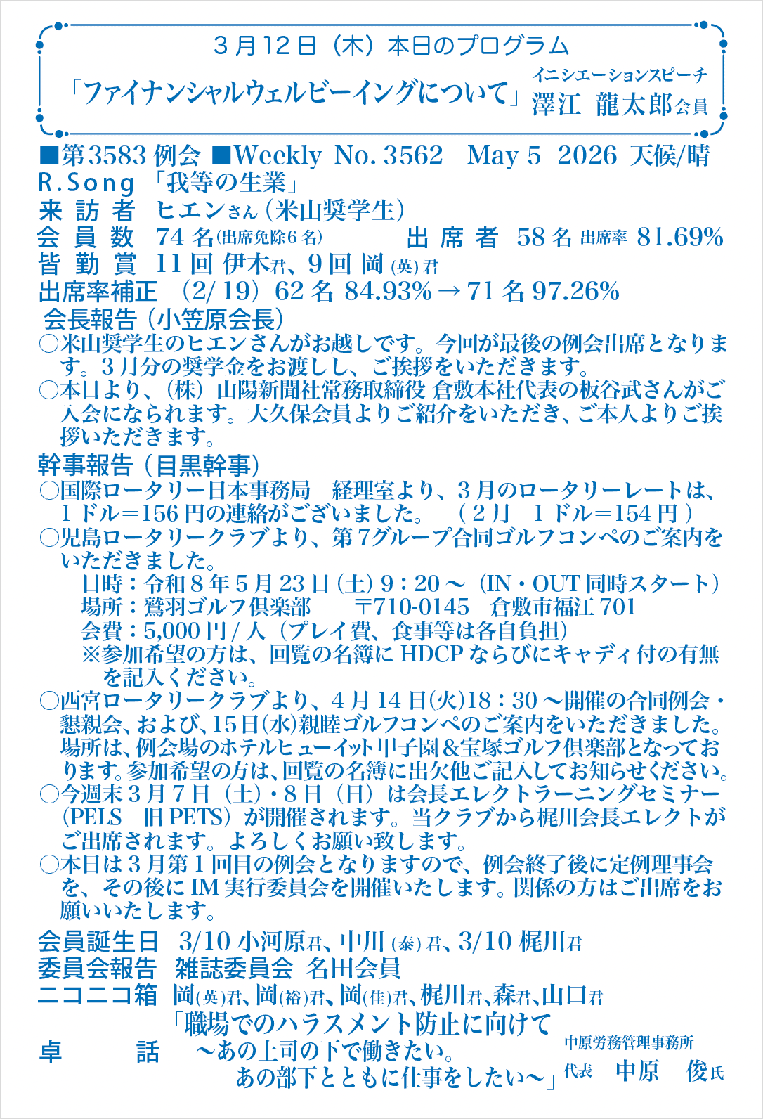 最新週報 2025年度
